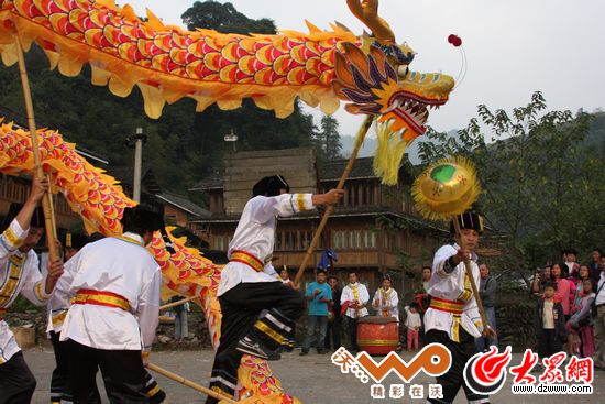黃洛瑤寨的男人們在排練舞龍,準(zhǔn)備參加21日的60周年縣慶。