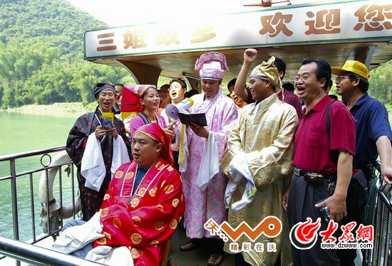 大眾網(wǎng)-聯(lián)通3G南寧12月8日訊(特派記者 劉國棟)壯族是我國少數(shù)民族中人口最多的一個(gè)民族,有將近2000萬人口,絕大多數(shù)遍布廣西壯族自治區(qū)。由于人多分布廣闊,很難說清廣西哪個(gè)地方的壯族最有代表性。從桂林的《印象.劉三姐》開始,我們就強(qiáng)烈感受到了這個(gè)被趙麗蓉稱之為“會(huì)唱歌的那個(gè)族”的壯族的魅力;到了劉三姐故里宜州,下枧河流域生活著的壯族,歌聲就是他們交流溝通的話,不唱不開口,鄉(xiāng)村的歌圩、城市的廣場,處處都是歌的海洋;而壯族文化的發(fā)祥地、壯族文字的發(fā)源地武鳴縣,對(duì)于壯族文化的保護(hù)、傳承和發(fā)展早就從娃娃抓起;最后我們?nèi)チ藟炎遴诟璧墓枢l(xiāng)——百色市平果縣,更是感受到了壯鄉(xiāng)歌海“寧可三日不餐、不能一日無歌”的山歌文化。