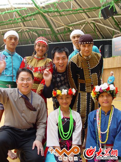 8年前,赴臺采訪的施曉亮一行與臺灣少數民族合影。(林德軍攝于臺灣九族文化村)