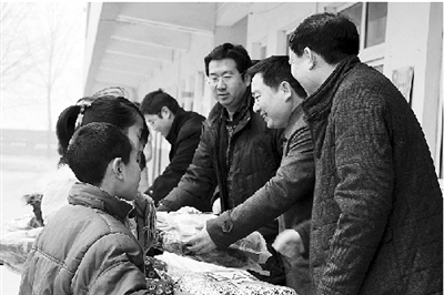 新華網(wǎng)河南頻道12月28日訊 中原網(wǎng)-鄭州日?qǐng)?bào)報(bào)道: (記者 孫志剛 通訊員 謝治理 張衡 文/圖)“謝謝伯伯們,感謝你們的幫助,我們會(huì)用優(yōu)異的學(xué)習(xí)成績(jī)來(lái)報(bào)答社會(huì)……”昨日上午,寒風(fēng)中當(dāng)鞏義市電業(yè)局的領(lǐng)導(dǎo)將棉衣、書(shū)包等慰問(wèn)品和慰問(wèn)金送到鞏義市河洛小學(xué)的貧困生手中時(shí),他們激動(dòng)地用稚嫩的話(huà)語(yǔ)表達(dá)謝意(如圖)。