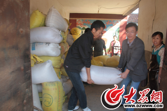 在村主任的帶領下,記者們來到這戶農民家門口,只見門口停著一輛小型卡車,院子里放滿了盛滿小麥的麻袋。一個強壯的農民正在來來回回的扛著麻袋網車斗里倒。這個農民叫李天祿,他告訴記者,今天要把10000多斤小麥買給面粉廠。