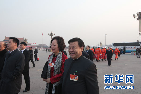 3月5日,第十一屆全國人民代表大會第四次會議在北京人民大會堂開幕。這是全國人大代表抵達北京天安門廣場。 新華社記者 邢廣利 攝