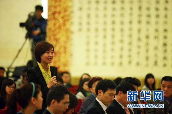 3月8日,全國政協(xié)十一屆四次會議在人民大會堂舉行記者會,一名記者在提問。
