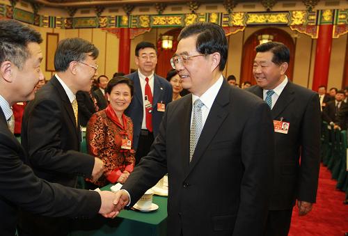 新華網北京3月4日電 中共中央總書記、國家主席、中央軍委主席胡錦濤4日親切看望了政協農工黨、九三學社界委員,并在聯組會上同大家一起討論。