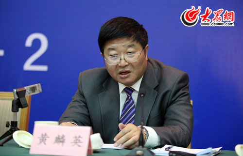 山東省人力資源和社會保障廳副廳長黃麟英發(fā)布全省勞動就業(yè)和社會保障事業(yè)發(fā)展情況。大眾網(wǎng)記者 曹亮 攝