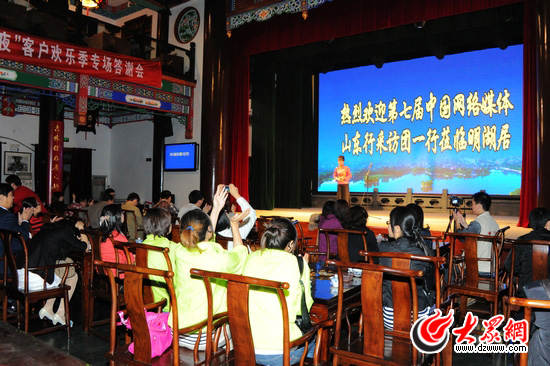 大眾網濟南10月16日訊(記者 尹海洋)一邊忙著接受采訪,一邊忙著用對講機協調晚上的演出,這是濟南曲藝團副團長李洋今晚在“明湖居”的工作狀態。16日晚,“文化強省看山東——第七屆全國網絡媒體山東行”大型采訪團來到明湖居,共享《明湖曲韻》的絕曲妙音,而編排表演這臺文化旅游劇的正是具有“齊魯曲藝第一團”之稱的濟南曲藝團。將流傳百年的山東曲藝經典一脈相傳,并在文化產業發展的快車上不斷創新、延伸,這個建團55載的曲藝“老團隊”一路奔波忙碌,靠傳統絕活再闖市場。
