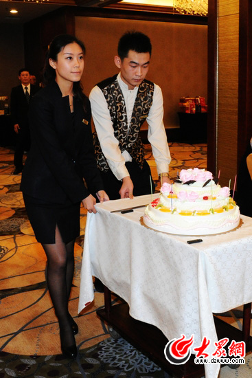 “熟悉的旋律又響起來了,每一年,這個(gè)旋律是我們的家人和朋友為我們過生日而準(zhǔn)備的,今天,許多朋友因?yàn)椴稍L而無法和家人團(tuán)聚,我們?yōu)檫^這些朋友準(zhǔn)備了生日蛋糕,讓大家共同分享他們的快樂!”今晚8時(shí),大眾網(wǎng)總編輯朱德泉手持話筒,出現(xiàn)在了宴會(huì)廳的中央,他一一念出10位壽星的名字,在10月份過生日的團(tuán)員們欣喜地走上前來,接受這份意外的祝福。生日蠟燭搖曳著,熱烈的掌聲此起彼伏,濰坊市委書記、市人大常委會(huì)主任張新起,山東省網(wǎng)絡(luò)文化辦公室主任劉致福,濰坊市委常委、宣傳部部長初寶杰和壽星們一起切開了生日蛋糕。