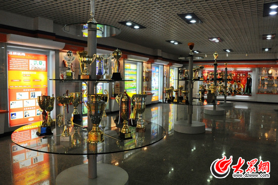 陳列室內,冠軍獎杯熠熠生輝。(攝影 燕雨)