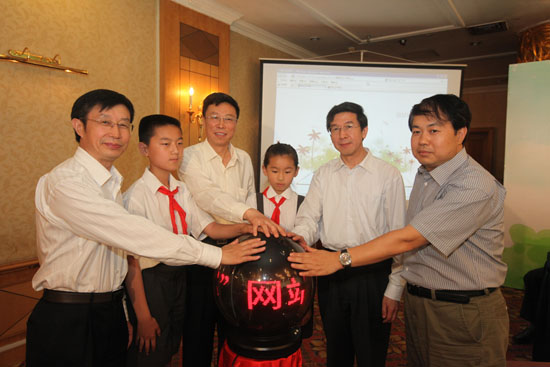 小記者與到會領(lǐng)導一起開通網(wǎng)上少年宮