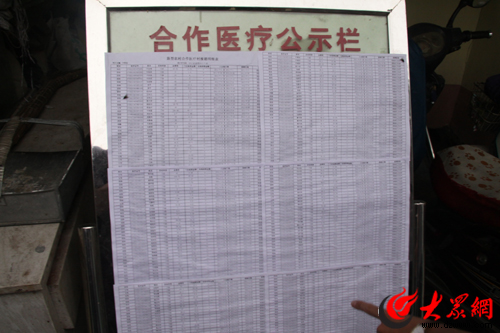 西楊村衛生所定時公布的村民報銷明細
