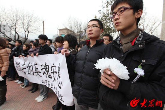 悼念:泰安市民自發組織悼念英雄民警