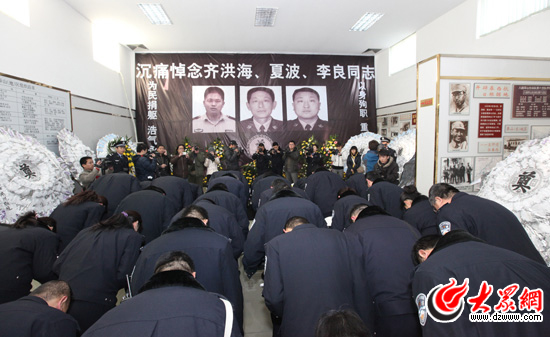 泰山南麓,哀樂聲鳴。從今天上午8:30起,泰安市全體公安民警在泰安市革命烈士陵園革命展覽館舉行悼念活動。泰安市市民及社會各界人士數千人手捧鮮花,也來到革命展覽館,深切緬懷在“1.04”襲警案件中殉職的兩名民警和一名協(xié)勤。稍后大眾網將帶來詳細報道。