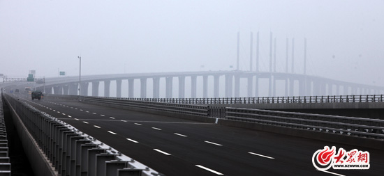 夏日的青島,風景旖旎,記者一行驅車從嶗山區出發,穿過青島市區,從李村河口駛上山東高速膠州灣跨海大橋。一望無際的跨海大橋,似一架長虹與海天共色。行駛在嶄新的柏油路面上寬闊的六車道讓汽車如此平穩舒適,在橋梁兩側,三三兩兩的工人正在安裝高1.4米的防撞彈性鋼護欄,柔和的護欄顏色與天、海、路相襯,美觀而又醒目。