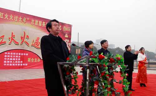 此次活動(dòng)是中共岳陽市委宣傳部和岳陽市文明辦為貫徹落實(shí)中央文明辦關(guān)于在元旦春節(jié)期間組織開展“紅紅火火過大年”主題志愿服務(wù)活動(dòng)通知精神開展的具體行動(dòng),希望通過廣泛動(dòng)員社會(huì)各界力量來關(guān)注災(zāi)區(qū)的困難群眾、殘疾人、空巢老人、農(nóng)民工和留守兒童等,使他們能夠溫暖過冬、平安過節(jié)、快樂過年。啟動(dòng)儀式上,市委宣傳部副部長、市文明辦主任許衛(wèi)國指出,2011年6月,臨湘遭受了特大山洪泥石流自然災(zāi)害,此次活動(dòng)的舉行,為的是弘揚(yáng)志愿精神,讓災(zāi)區(qū)人民過好災(zāi)后第一個(gè)春節(jié),并在全市范圍營造出歡樂喜慶、紅紅火火過大年的節(jié)日氛圍,他還就如何組織好“紅紅火火過大年”主題志愿服務(wù)活動(dòng)提出了三點(diǎn)要求;市委常委、宣傳部長徐新啟宣布2012年岳陽市“紅紅火火過大年”主題志愿服務(wù)活動(dòng)正式啟動(dòng),志愿者代表作了表態(tài)發(fā)言,文藝工作者表演了十分精彩的文藝節(jié)目。儀式結(jié)束后,市委常委、宣傳部長徐新啟等專程到社區(qū)進(jìn)行了慰問活動(dòng)。