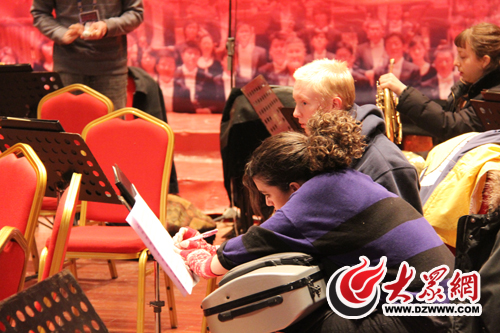 大眾網濟南12月23日訊(記者 馬鑫)“It's a big room!(演出場地真大。眱擅筇崆偈诌M入山東會堂后不由地贊嘆。今天下午4點,參加今晚“2012年建行之聲新年音樂會”的美國費城國家交響樂團的樂隊成員,以及特邀指揮指揮茲沃尼米爾·哈克先生和首席小提琴手馬克斯·佐琳先生來到山東會堂,開始了正式演出前的集中彩排。