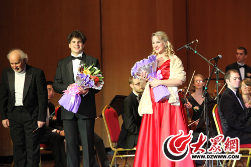 “Merry christmas!(圣誕快樂!)”雖然演出已經(jīng)結(jié)束,但是在山東會(huì)堂的后臺(tái)仍然聚集著許多等候跟男女高音、樂隊(duì)指揮以及第一小提琴手合影的樂迷。除了和自己的偶像合影之后的興奮尖叫之外,不少樂迷還不忘送節(jié)日祝福。“明天就是圣誕節(jié)了嘛,他們?cè)谥袊惭菀矝]法和家人團(tuán)聚,也算是代表咱們中國人對(duì)他們的一種祝福吧,也感謝他們給我?guī)淼囊粓?chǎng)這么好的新年禮物。”樂迷陳女士對(duì)記者說。