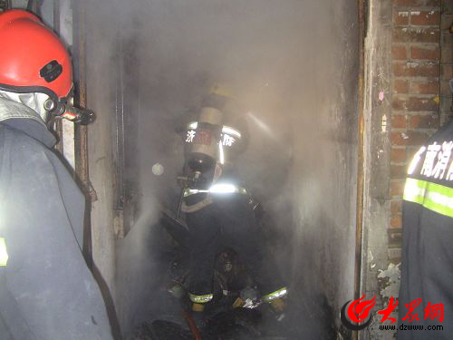 剛過晚上八點,又一個火警:南辛莊一民宅有火情!“鈴……”消防官兵對這種聲音似乎已有本能反應。厚重的戰(zhàn)斗服對于他們速度的阻礙似乎并不存在,記者緊跟其后上了載重6噸的水罐車(一米多高的車門并不容易攀爬)。消防車沿經(jīng)七路一路向西,四分鐘左右到達現(xiàn)場。著火建筑為一幢民居平房,此時,濃煙夾雜火苗借著風勢從該平房東側(cè)一間屋子噴出。經(jīng)詢問得知,屋內(nèi)并無人員被困。經(jīng)過消防官兵十幾分鐘的撲救,大火被撲滅。