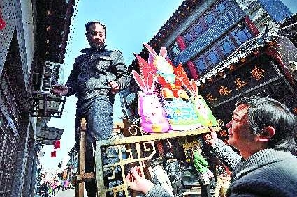 2008年春節,楊峰將自己的“兔子王”工作室設在了泉城標志性老街———芙蓉街,專營“泉城兔子王”等獨具濟南文化特色的旅游紀念品。