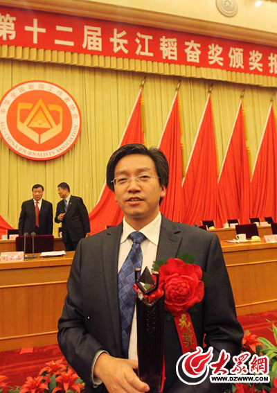 大眾網(wǎng)董事長(zhǎng)、總經(jīng)理林忠禮作為獲獎(jiǎng)代表參加頒獎(jiǎng)大會(huì)并捧回中國新聞獎(jiǎng)一等獎(jiǎng)獎(jiǎng)杯。(記者 曹亮 攝)