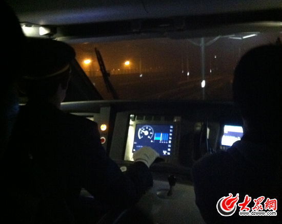 5點(diǎn)左右天還未亮  記者跟隨工作人員進(jìn)入火車頭司機(jī)室