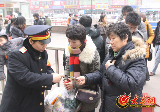[提要] 1月20日,濟(jì)南的氣溫降到了0℃以下。寒冷的風(fēng)依然沒有擋住旅客回家過年的腳步,也沒有讓火車站的工作人員放松迎接乘客的神經(jīng)。今天上午9點(diǎn),記者來到濟(jì)南市火車站,與車站的實(shí)名制驗(yàn)票員一起感受春運(yùn)帶來的勞累與欣慰。
