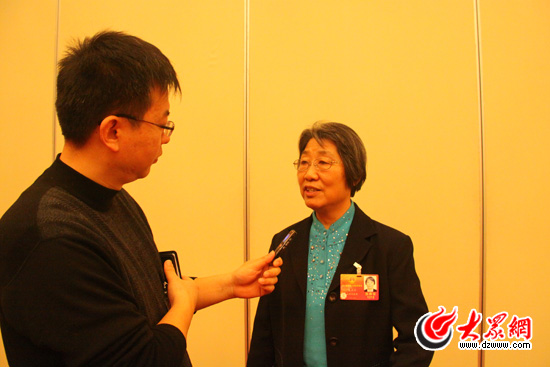 全國人大代表、青島即發(fā)集團(tuán)控股有限公司董事長(zhǎng)陳玉蘭接受大眾網(wǎng)記者采訪。
