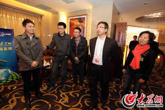 大眾網(wǎng)北京3月11日訊(特派記者 尹玉濤 王磊 盛堃 劉國棟)今天上午,山東省委宣傳部副部長李建軍在省委宣傳部新聞處處長楊曉洲、副處長李慶義的陪同下,專程來到大眾網(wǎng)設(shè)在全國人大代表山東團(tuán)駐地的“兩會(huì)直播間”,親切看望報(bào)道全國“兩會(huì)”的大眾網(wǎng)采編人員。在聽取了大眾網(wǎng)全國“兩會(huì)”期間的工作情況介紹,他對(duì)大眾網(wǎng)的全國“兩會(huì)“報(bào)道給予充分肯定,并對(duì)“請(qǐng)問省長”、“請(qǐng)問書記、市長”以及3G直播山東團(tuán)“每日會(huì)話”等欄目給予高度評(píng)價(jià)。