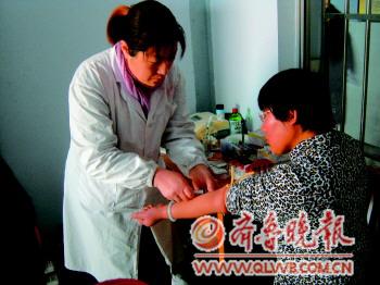 無(wú)棣縣水灣鎮(zhèn)中心衛(wèi)生院醫(yī)生在為村民做檢查。(資料片)