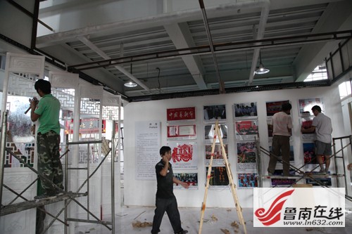 魯南在線訊 第二屆中國非物質文化遺產博覽會將于9月6日至10日在臺兒莊古城舉行,將展示來自全國33個省、自治區、直轄市及港澳臺地區767個省級以上優秀非物質文化遺產項目,將以展會結合的形式,運用實物、文字、圖片、視頻多媒體等多種展覽、展演手段,展現人類文化的多樣性和非物質文化遺產的保護成果。目前各項籌備工作進入沖刺階段,來自全國各地的布展小組已經陸續來到棗莊,開始布展工作。9月3日下午,記者走進非遺博覽會會展中心,走近了正在裝修展位的工人師傅們。