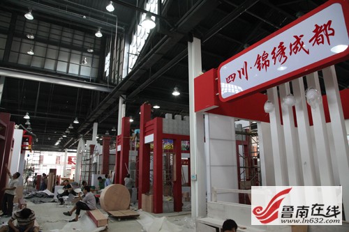 這幾天恰好趕上棗莊天氣比較熱,雖然展廳內開著空調,但忙活起來還是經常一身汗,但大家都沒有怨言,而是加班加點努力工作,爭取將厚重的三秦文化較好的展現在觀眾面前。在A2展區。記者看到,帶有徽派建筑風格的安徽展區特裝展位已經做好,正等著擺放展品呢。和它“對門”的浙江展廳,工人們還在進行搭建制作,設計的展位明顯帶有江南“小橋流水人家”的感覺。