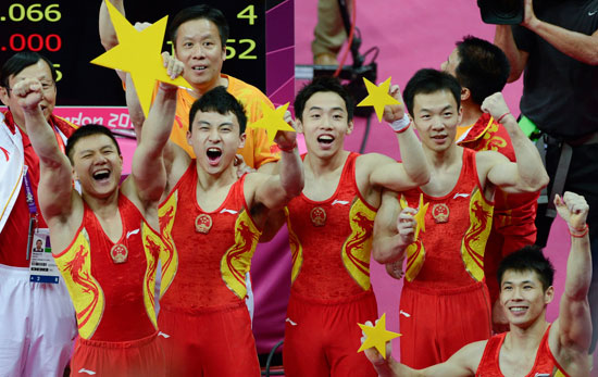 [提要] 北京時間7月31日凌晨,2012年倫敦奧運會產生體操項目的首金。在男子團體決賽中,資格賽排名第六的中國隊完美發揮,所有選手都沒有出現重大失誤,最終衛冕成功。