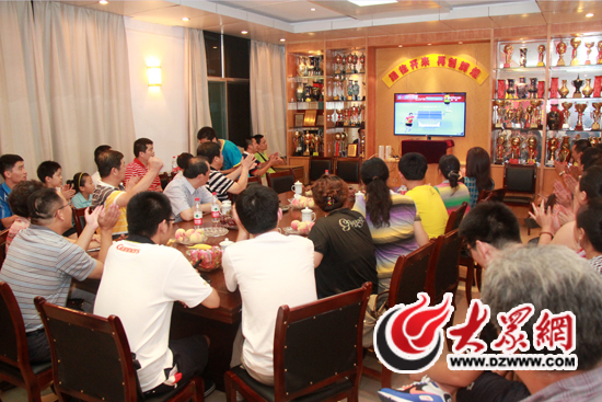 比賽開始后,姜艷就離開了緊張關注電視直播的人群。會議室的人們時而鼓掌喝彩,時而扼腕嘆息,都被緊張的比賽牽住了全部心神。