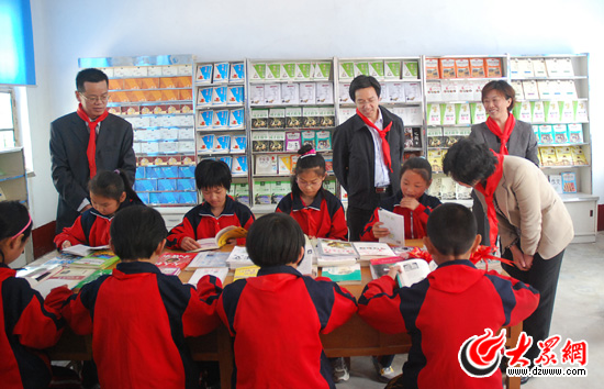 德州禹城市莒鎮鄉中心小學的學生開心的閱讀愛心圖書。(大眾網記者 王長坤 攝)
