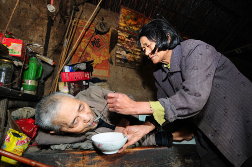 直到今天,已經64歲滿頭白發的滿振蘭依然沒有放棄躺在病床上的哥哥。在臨沂市沂南縣辛集鎮北左泉村,便有著這樣一對讓人感動的兄妹,59年,妹妹不離不棄臥病在床的哥哥。