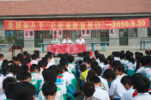 這是后村鎮“五老”宣講團的帶頭人鄭世耀義務宣講“榮辱觀”的一個鏡頭。