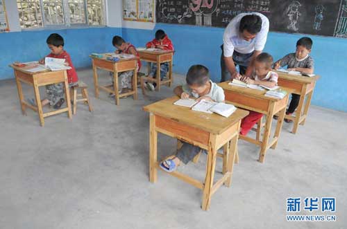 自參加工作以來,他一直工作在教學第一線,因為他喜歡學生,把學生當成自己的孩子。去年,和他搭檔多年的許老師退休了,現在他一個人默默地承受著寂寞,播種著希望。