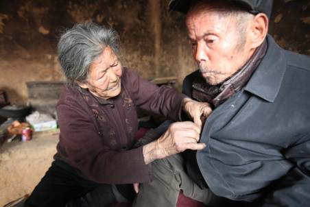 每天早上,要靠老母親給穿上衣服、鞋襪后把我抱下來,給我做好飯,要把飯端到桌子上,把筷子遞到手里,兩手托著才能吃點飯。要想站起來,也得靠母親把我抱起來,不怕別人笑話,就連大小便也得靠俺娘我才能蹲下和站起來。”據了解,謝加富的弟弟叫謝加遠,十幾年前得的也是同樣的病,2008年去世。趙家美老人從那時起一天要照顧兩個孩子的飲食起居。趙家美老人說:“那時兩個兒子都得了病不能動了。因為不能上下床,二兒子在屋里打了一個地鋪,這樣方便了些。我除了去做飯就是圍著他們兩個轉,一天下來累得我腰酸背痛。那時候還行,現在硬撐著也干不動了,我還能活幾年呢?我死了誰來照顧他呢?”老人一臉愁容,老觀念對兒子未來生活的無限擔憂。90歲的她對此越來越感到吃力和無奈,但趙家美老人沒有別的選擇,沒有人代替她或幫助她。她這樣照顧喪失生活自理能力的兒子已經快二十年了。