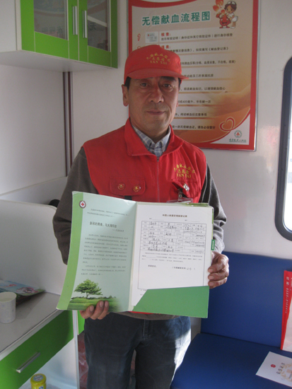 “同事、朋友們都不理解,家人也反對(duì)!崩钌ふf,因?yàn)樗麍?jiān)信獻(xiàn)血是件好事,要堅(jiān)持做下去。他的妻子身患中風(fēng),一半身體沒有知覺不能動(dòng),生活也不能完全自理,李升亭外出宣傳時(shí),便將妻子反鎖在他們的小雜貨店里。每天的宣傳“任務(wù)”結(jié)束后,便匆匆趕回來,幫助妻子大小便,有好幾次妻子等不到他回來,出現(xiàn)了大小便失禁的情況。