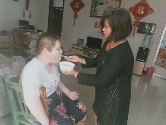 因為孩子是在大冬天被抱回來的,取名王冬梅,希望她像冬梅那樣堅強。冬梅2歲左右的時候,還不能走路,話也說不清楚,這可把一家人急壞了。“為了給孩子看病,剛開始那幾年,我和婆婆帶著冬梅跑遍了全縣的大小醫院,后來聽說省里醫院技術條件好,俺就背著煎餅帶著孩子去檢查,最后診斷結果是先天性的腦發育不全!沒得治!”