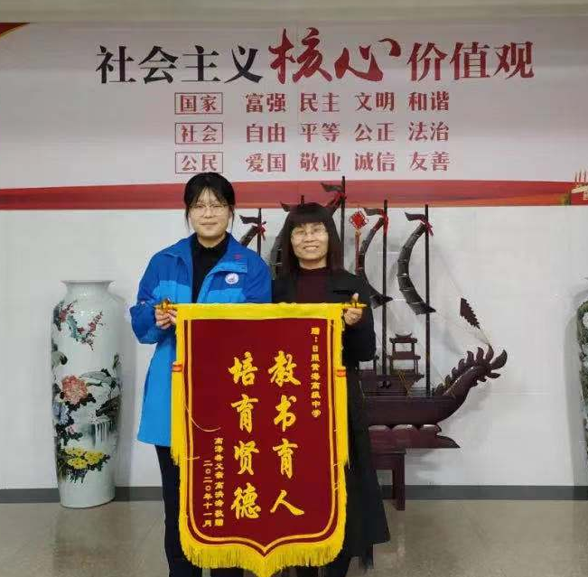 感謝黃海高中培育出這樣優(yōu)秀的孩子,救了我們的孩子,救了我們?nèi)胰说南M5任业暮⒆娱L(zhǎng)大后,不管他考不考去黃海高中,我都要讓他來(lái)感受他的恩人姐姐所接受教育的環(huán)境。黃海高中還有老師和孩子們賦予了我們一種新的認(rèn)識(shí)和精神。我們給黃海高中送了一面錦旗,再次提出感謝。”