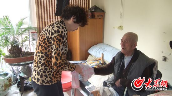 1998年4月,老人不小心骨折,此后便一直癱瘓在床。房澤秋和于海悉心照料老人,給老人理發、刮胡子、剪指甲、修腳、收拾大小便。這么多年,老人身上沒有長過一個痱子,沒生過一個褥瘡。