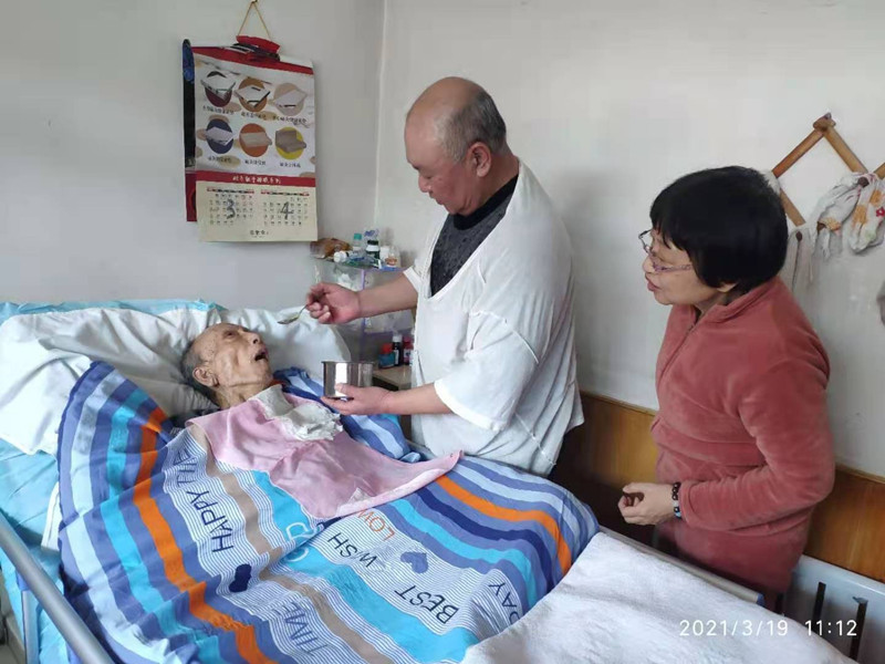 王兆奇是個達觀之人,從沒有因為需要照顧病人抱怨牢騷,問及原因時,他略有深沉地說,岳父是個苦命的人,少年喪父,中年喪妻,老年喪子,如今,我說什么也不能再讓老人受苦了。王兆奇日常生活的大部分時間和精力都放在了照顧老人身上。為了保障老人的營養,他一日三餐不重樣地給老人做飯,飯做好后,再把飯打成飯糊,一口一口地喂給老人吃,雖然老人聽不懂話,但他總是一邊喂飯,一邊和老人聊天。老人臥床不能活動,接屎端尿、翻身按摩,他從來沒有嫌棄過老人。為了更好的照顧老人,還主動去學習護理知識,堅持每天為老人擦身體、按摩、扣背,日復一日,年復一年,熟練地動作堪比專業護理人員。在他的精心護理下,老人臥床7年來,從來沒有得過褥瘡。