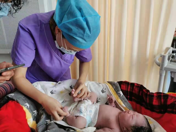 謝曉蕾在護理新生嬰兒