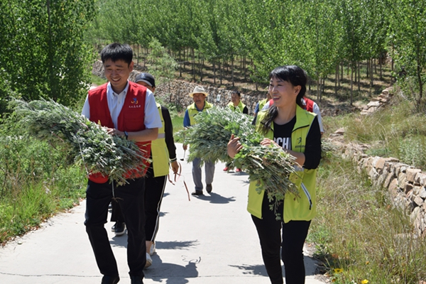 端午前夕高翠紅帶領(lǐng)志愿者到山上割艾葉,并為家家戶戶門(mén)上插上了艾葉