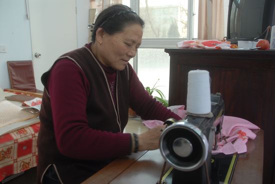 鄒坤榮自幼心靈手巧,做得一手好針線活兒,縫紉機、鎖邊機更是使喚得熟練。家里的衣物、用品都整理的板板整整,大家看著眼羨,就經常找他幫忙。今天這個說:“大媽,我的摩托車座套壞了,幫我做個新的吧!泵魈炷莻說:“二嬸,我才買了沙發,幫我上個沙發套吧!边有的說:“我家的布衣櫥不像樣了,幫我換換吧。”對此,鄒坤榮每回都是有求必應,連宿帶夜地將東西趕制出來,給人送去。人們說,鄒坤榮在于家村不知做了多少件床品,多少件沙發套、椅墊和布衣櫥。有的人以為她是加工活,問她做一件多少錢,鄒坤榮一聽就著急了:“大家不嫌棄我手拙,拿去用就是啦,鄰鄰居居的,談什么錢?”村民鄭人秋的老伴兒去北京看孫子,鄭人秋一個人在家,平時做飯還好說,縫縫補補的事情,經常是鄒坤榮來做。鄭人秋的老伴兒陳麗華外出一年后回到家,看到家里干凈整潔的樣子,感激得直夸獎鄒坤榮。日子久了,大家為了答謝鄒坤榮,有時會送來瓜果梨棗什么的,她怎好意思就這么收下,所以,哪家有事她就主動當免費幫工。