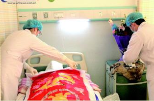 醫生在為李晉俠做提取眼角膜前的準備工作