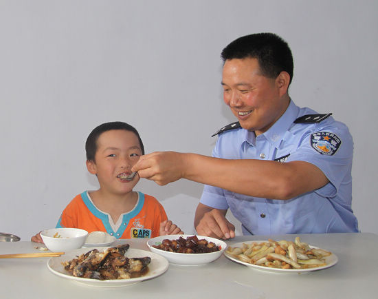 劉洪常,系山東省膠州市公安局云溪派出所民警,2008年從部隊轉業到公安隊伍。他用實際行動詮釋著“人民公安為人民”的誓言,先后收養無家可歸的小俊俊,資助生活困難的小晨晨,被兩個可愛的孩子親切地稱為“警察爸爸”