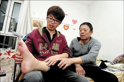 每天,曉杰的父親都興洋要做4次康復,在醫(yī)院,一個關節(jié)的按摩價格是80元,而一天下來,僅是按摩的費用就得1000元,為了省錢,曉杰向醫(yī)生學會了按摩的手法,將每天4次的按摩改為由醫(yī)生推兩次,剩下的兩次由自己給父親推。即使如此,只有支出沒有收入的父子二人,在北京的生活也逐漸捉襟見肘。