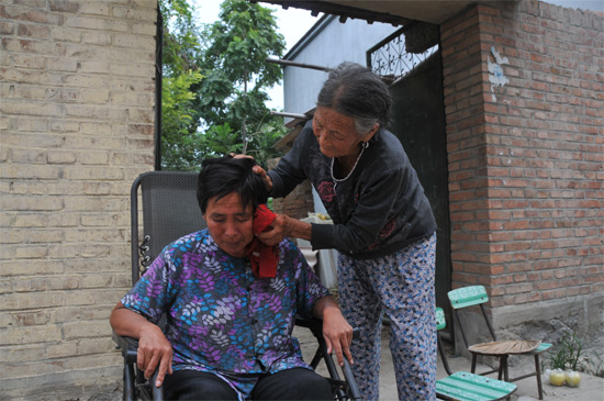 一位80歲的老人,照顧兩個(gè)臥床的病人,同時(shí)還要照顧地里的莊稼,這其中的困難可想而知。老人說,前一段時(shí)間下雨的時(shí)候,嘩嘩的下很大,我一想屋里肯定得進(jìn)水了,我就往兒媳家里趕,鄰居海運(yùn)說,這么大雨,你不要命啦,你去干什么?我說,他屋里灌這么深的水,沒人管不行啊!他們兩個(gè)都下不了床。海運(yùn)說,我跟你去。
