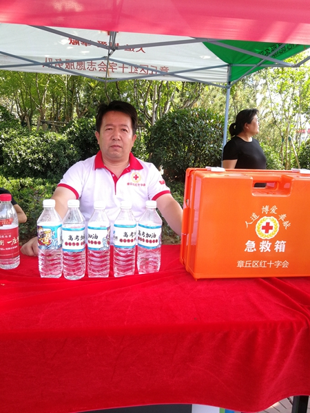 2019年夏天,一場突如其來的臺風席卷整個山東。受臺風“利奇馬”影響,章丘區部分鎮街受災。災情發生后,霍中祥帶領紅十字造干志愿者隊伍星夜集結,隨時待命,24小時值班參與救災物資轉運、受災群眾安撫等志愿服務工作。在大家的共同努力下,區紅會申請調撥和募集的所有救災物資全部在3小時內送達受災鎮街。由于在救災工作中的突出表現,紅十字造干志愿服務隊獲得區委區政府表彰的“抗震救災先進集體”榮譽稱號。2020年伊始,新冠肺炎疫情爆發。疫情就是命令,防控就是責任!在紅十字會的調度指揮下,霍中祥帶領紅十字志愿者放棄休息時間,全力投入到新冠疫情防控,他們在執勤點協助執勤、在交通卡口參與體溫檢測、車輛登記疏導、疫情防控知識宣傳,頂著刺骨的寒風,從早到晚一天十幾個小時忙忙碌碌,不叫苦累、不計報酬,默默奉獻著直到解除疫情響應,累計服務時長達9000多小時,用實際行動詮釋了紅十字志愿者隊伍是一支召之即來來之能戰的隊伍,紅十字志愿者是用實際行動詮釋人間大愛的博愛使者。